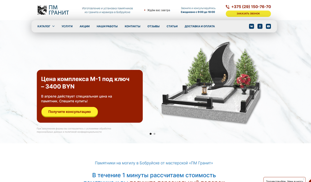 На этом этапе сайт pmgranit.by полноценно запущен!